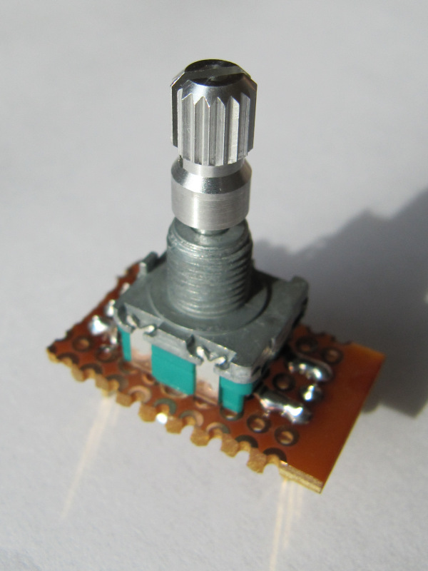 Im Bild: Der Anschluß des mechanischen Encoders, ebenfalls mit den Phasen-Signalen an Pins 9 und 10 und dem Taster an Pin 8.