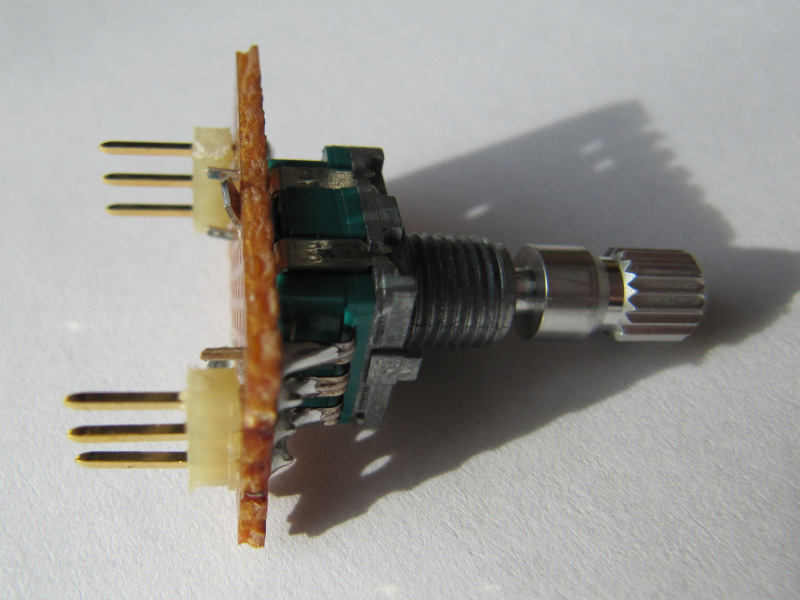 Hierbei handelt es sich um sehr praktische Eingabe-Schalter, die im Englischen als „Rotary Encoder“ bezeichnet werden. Bekannt sind diese Geber unter anderem als anschlagloser Lautstärkeregler im Autoradio. Sie beinhalten sowohl einen Taster als auch einen Geber, der bei jeder Drehung mehrere Impulse und die Information „rechts“ bzw. „links“ übergibt.